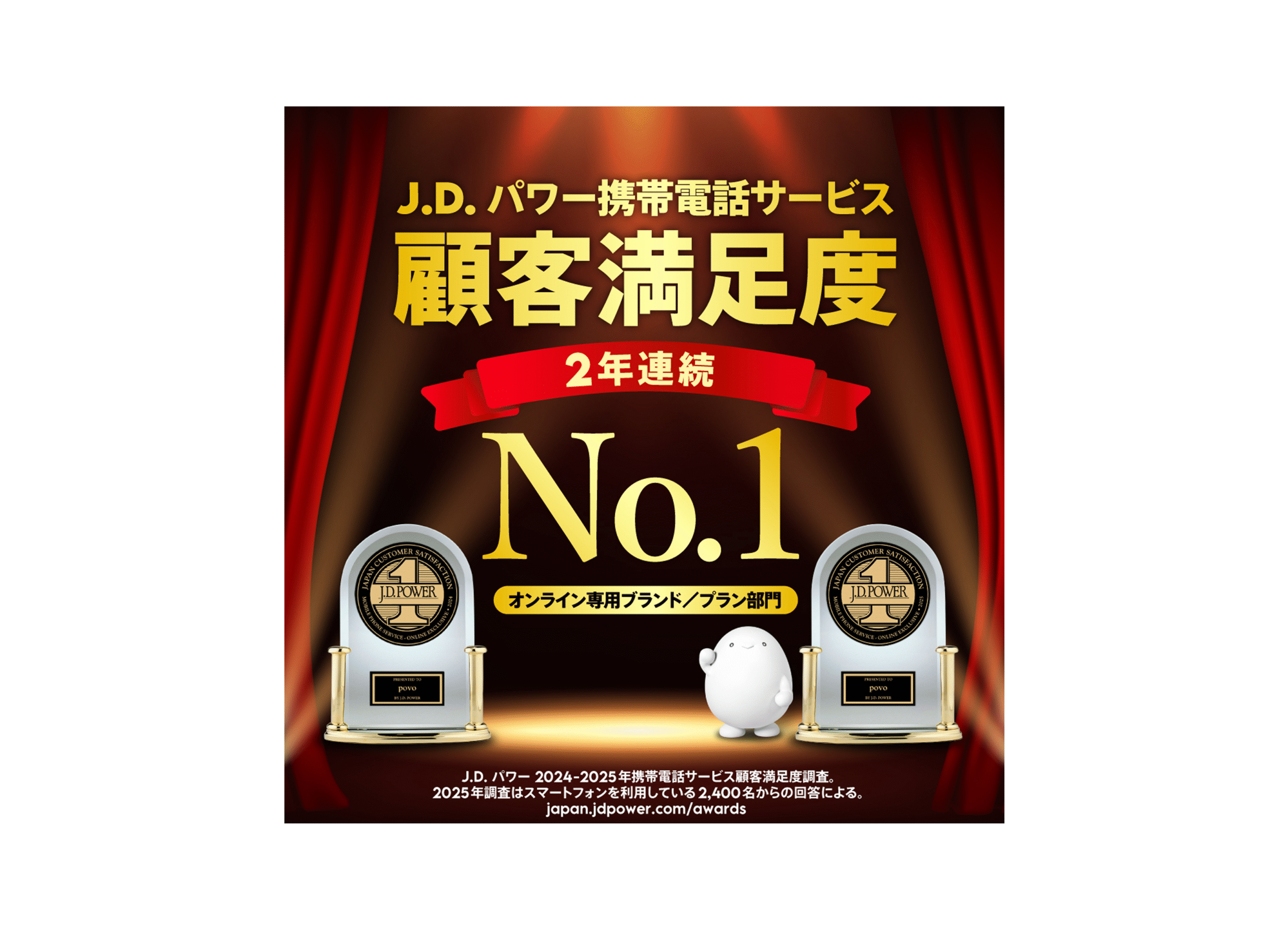 NEWSpovo、「J.D. パワー 2025年携帯電話サービス顧客満足度調査℠」<オンライン専用ブランド/プラン部門>で2年連続1位を受賞